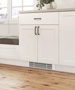 A “kick space” fan heater is a great unit to compensate for the lack of space in the kitchen and bathroom. It is installed directly at the height of the recessed molding under the cabinet of the sink or washbasin for unparalleled comfort.